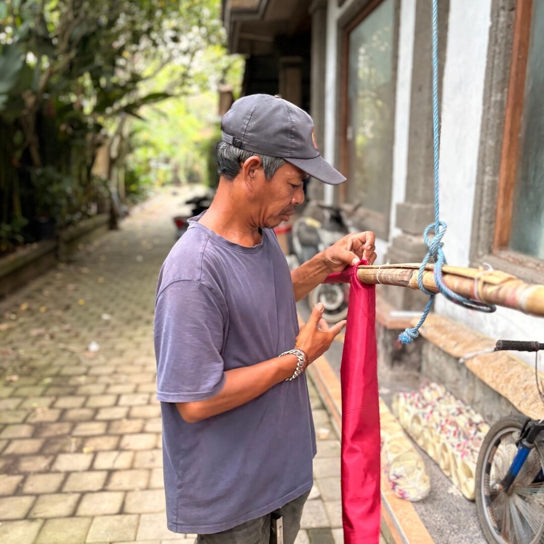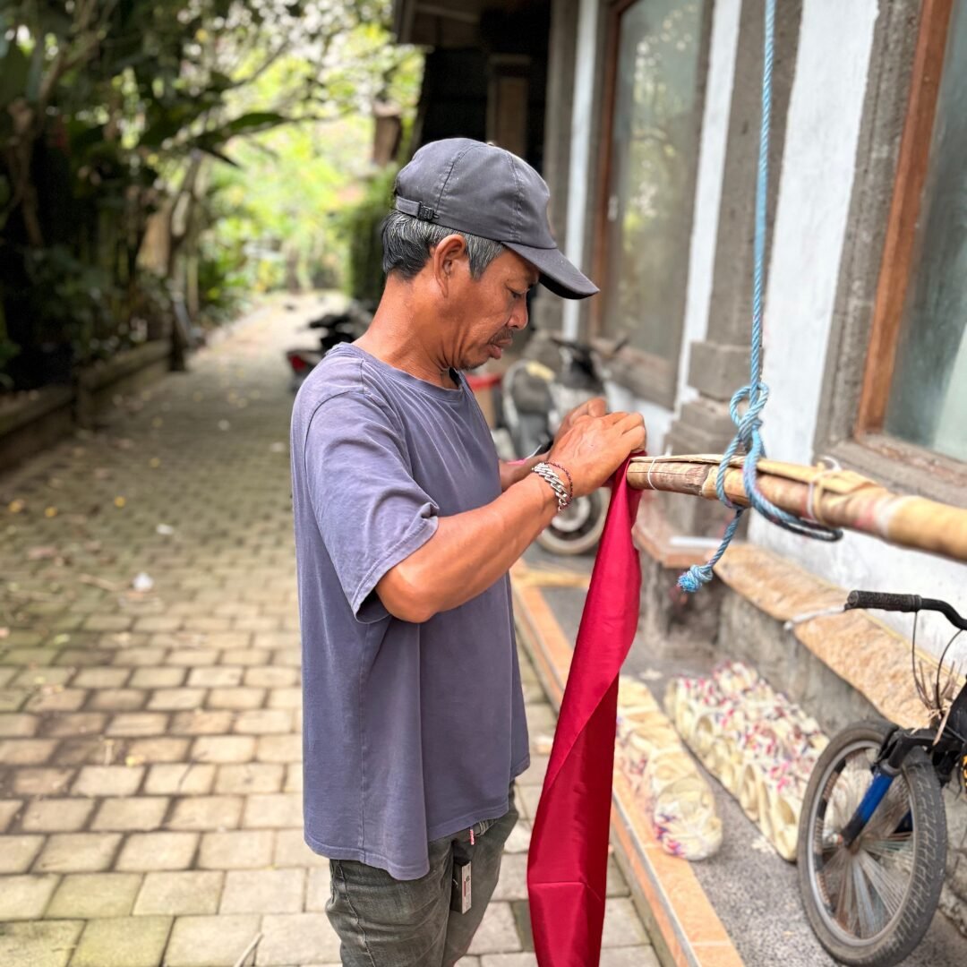 Meet the artisans, Ketut, and dive into the craft. Learn the symbolism of each element, weave janur, prep ornaments, and assemble your own Penjor (plus a mini to take home). Photos are shared with consent.